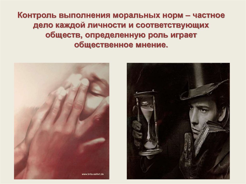 Контроль выполнения моральных норм – частноедело каждой личности и соответствующих