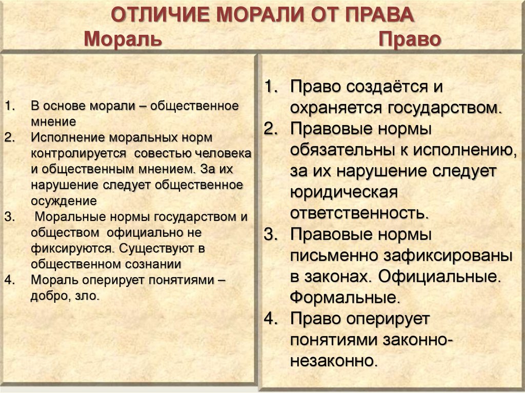 ОТЛИЧИЕ МОРАЛИ ОТ ПРАВАМораль