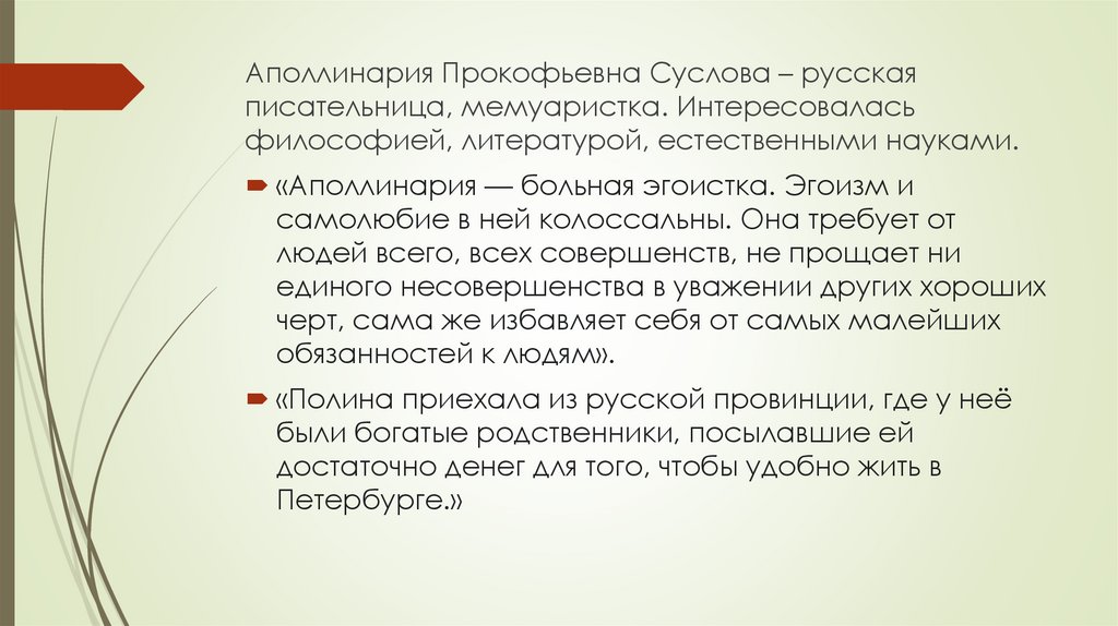 Аполлинария Прокофьевна Суслова – русскаяписательница, мемуаристка. Интересовалась