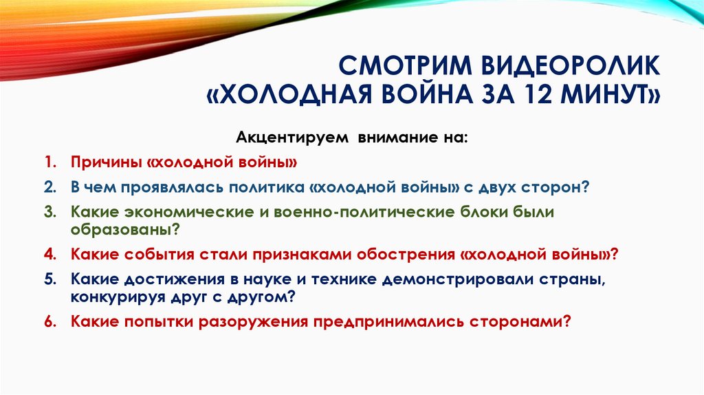 4. Смотрим видеоролик «Холодная война за 12 минут»