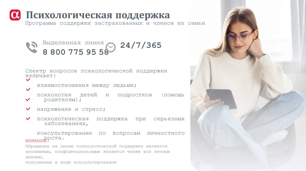 Психологическая поддержкаПрограмма поддержки застрахованных и членов их семьи