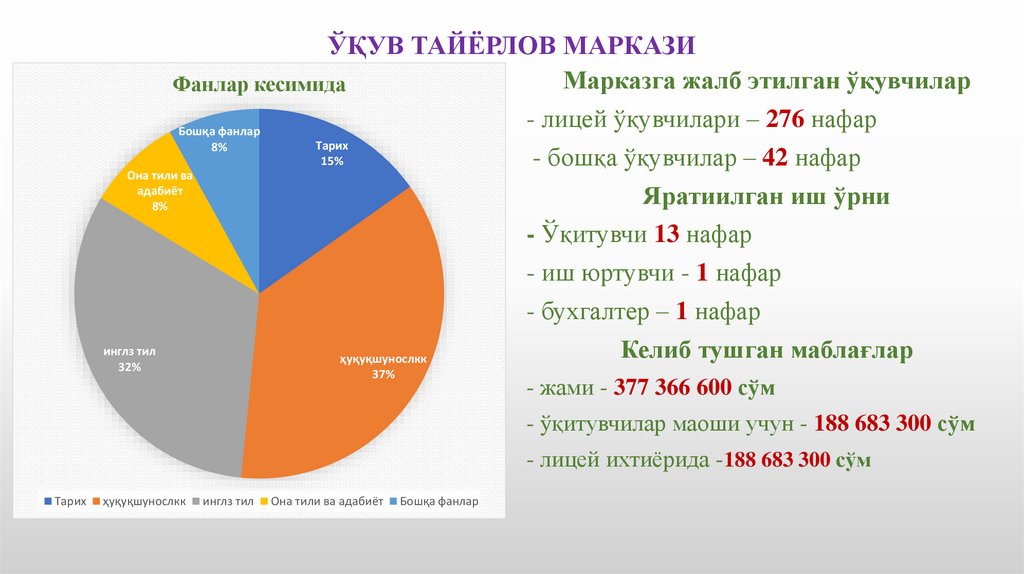 ЎҚУВ ТАЙЁРЛОВ МАРКАЗИМарказга жалб этилган ўқувчилар