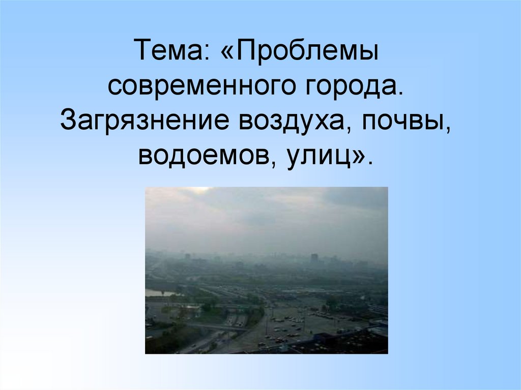 Проблемы современного города. Загрязнение воздуха, почвы, водоемов, улиц