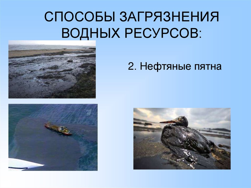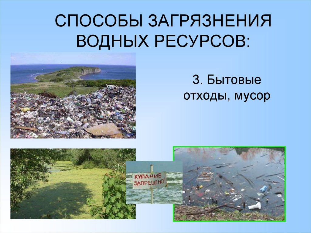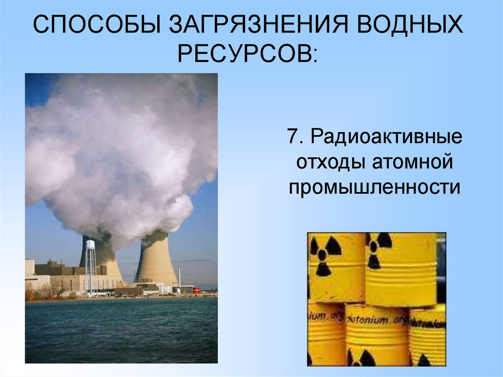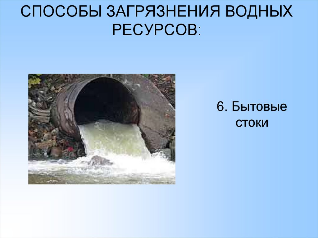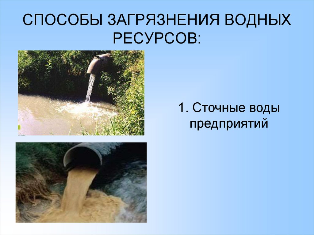 СПОСОБЫ ЗАГРЯЗНЕНИЯ ВОДНЫХРЕСУРСОВ: