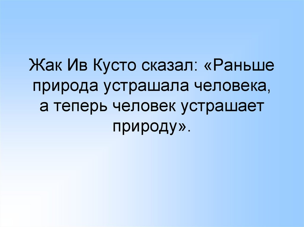 Жак Ив Кусто сказал: «Раньшеприрода устрашала человека,