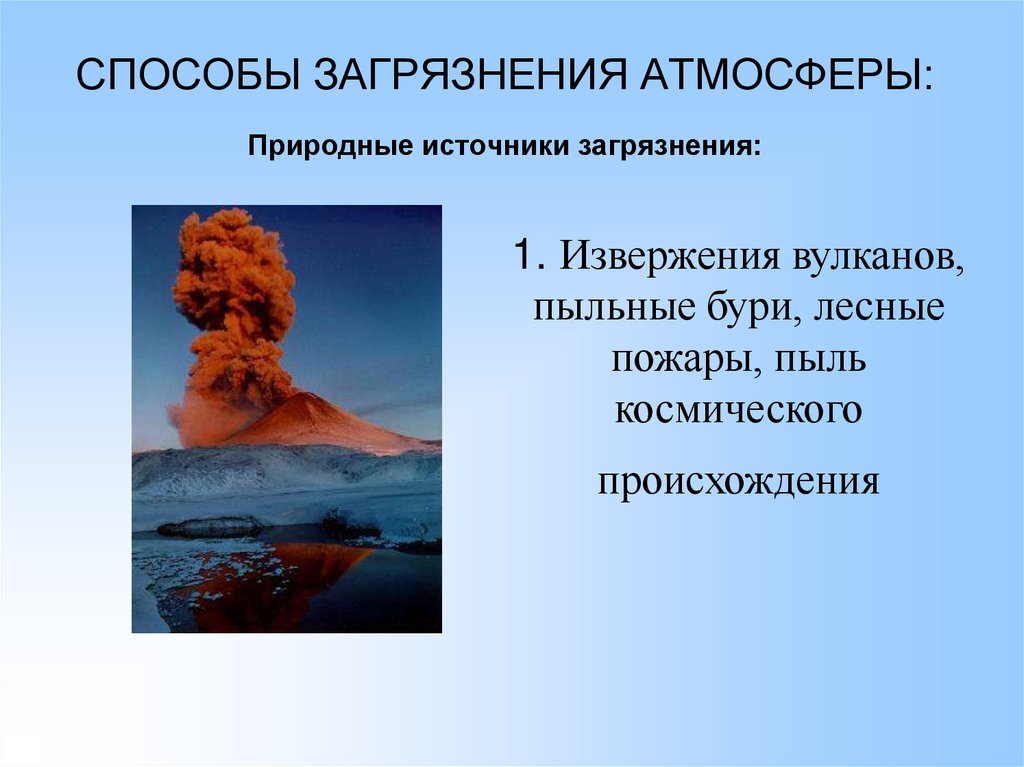 СПОСОБЫ ЗАГРЯЗНЕНИЯ АТМОСФЕРЫ:Природные источники загрязнения: