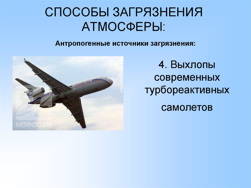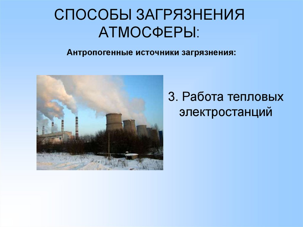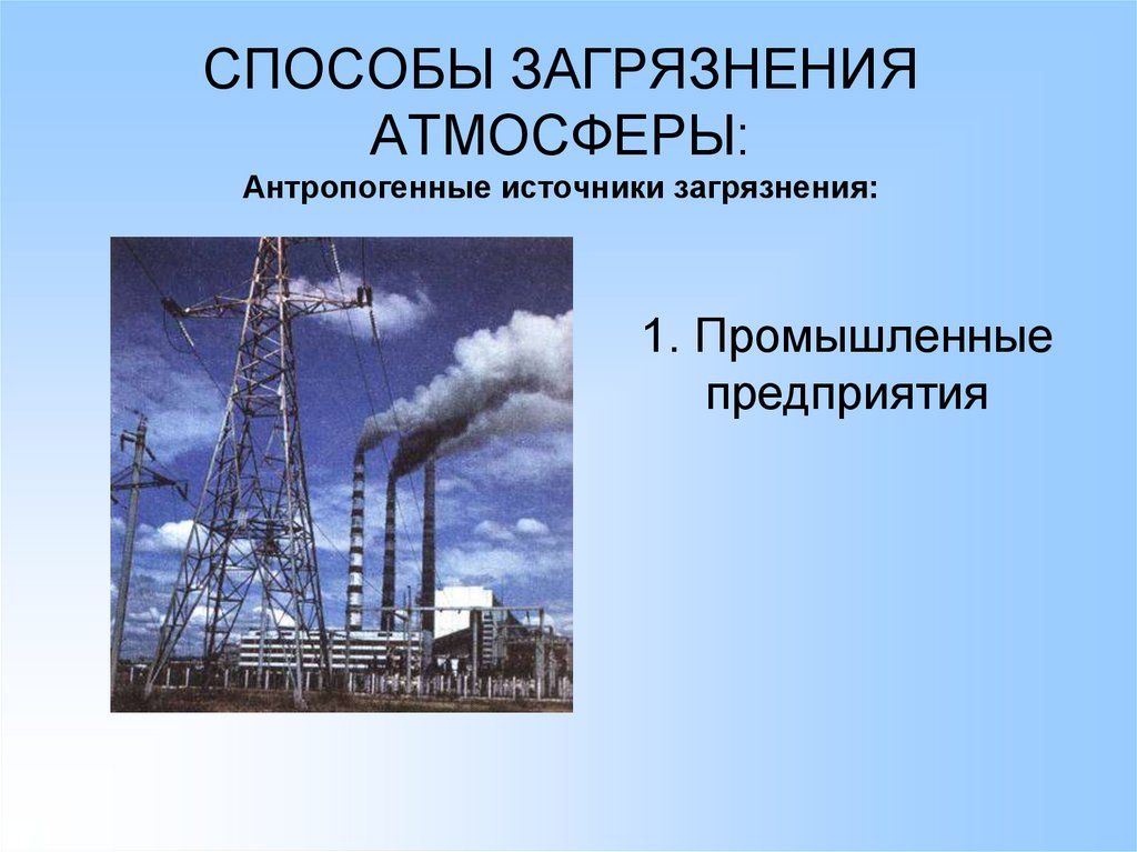 СПОСОБЫ ЗАГРЯЗНЕНИЯ АТМОСФЕРЫ:Антропогенные источники загрязнения: