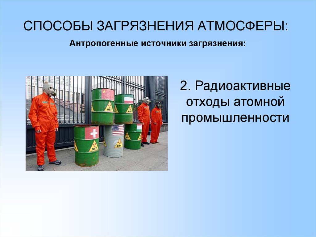 СПОСОБЫ ЗАГРЯЗНЕНИЯАТМОСФЕРЫ: