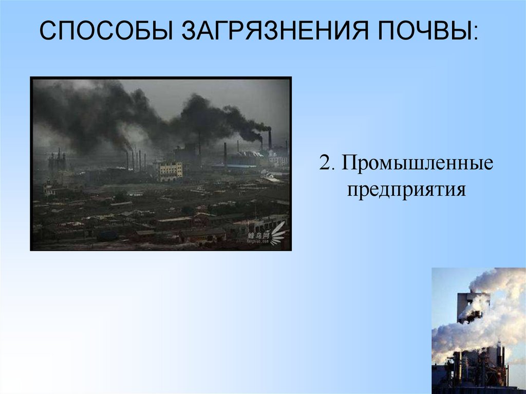 СПОСОБЫ ЗАГРЯЗНЕНИЯ ПОЧВЫ:2. Промышленные
