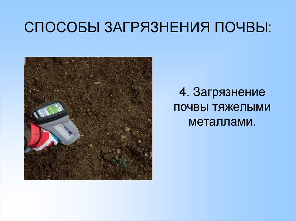 СПОСОБЫ ЗАГРЯЗНЕНИЯ ПОЧВЫ:4. Загрязнение