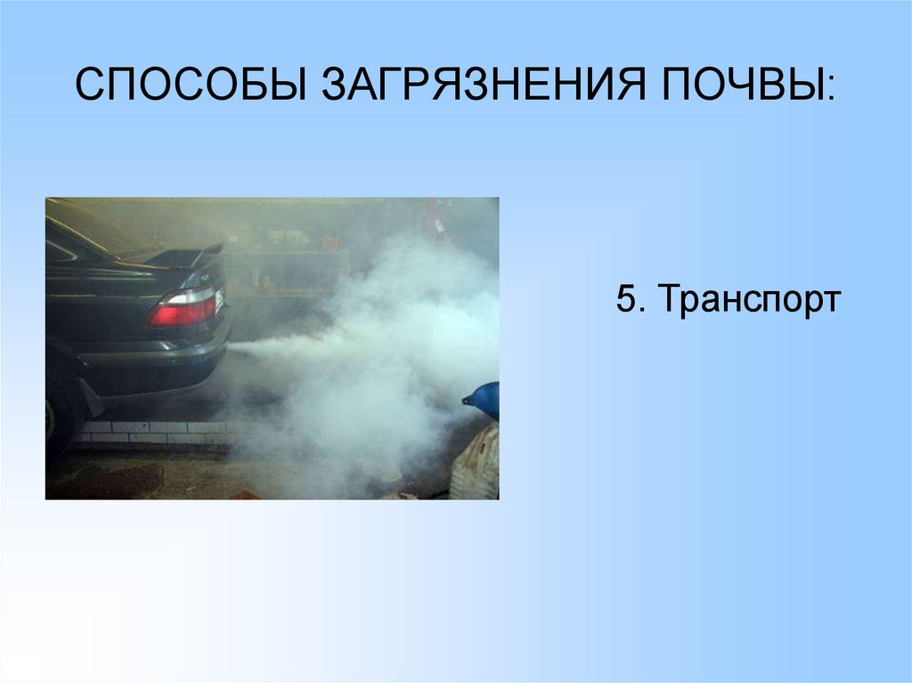 СПОСОБЫ ЗАГРЯЗНЕНИЯ ПОЧВЫ:5. Транспорт
