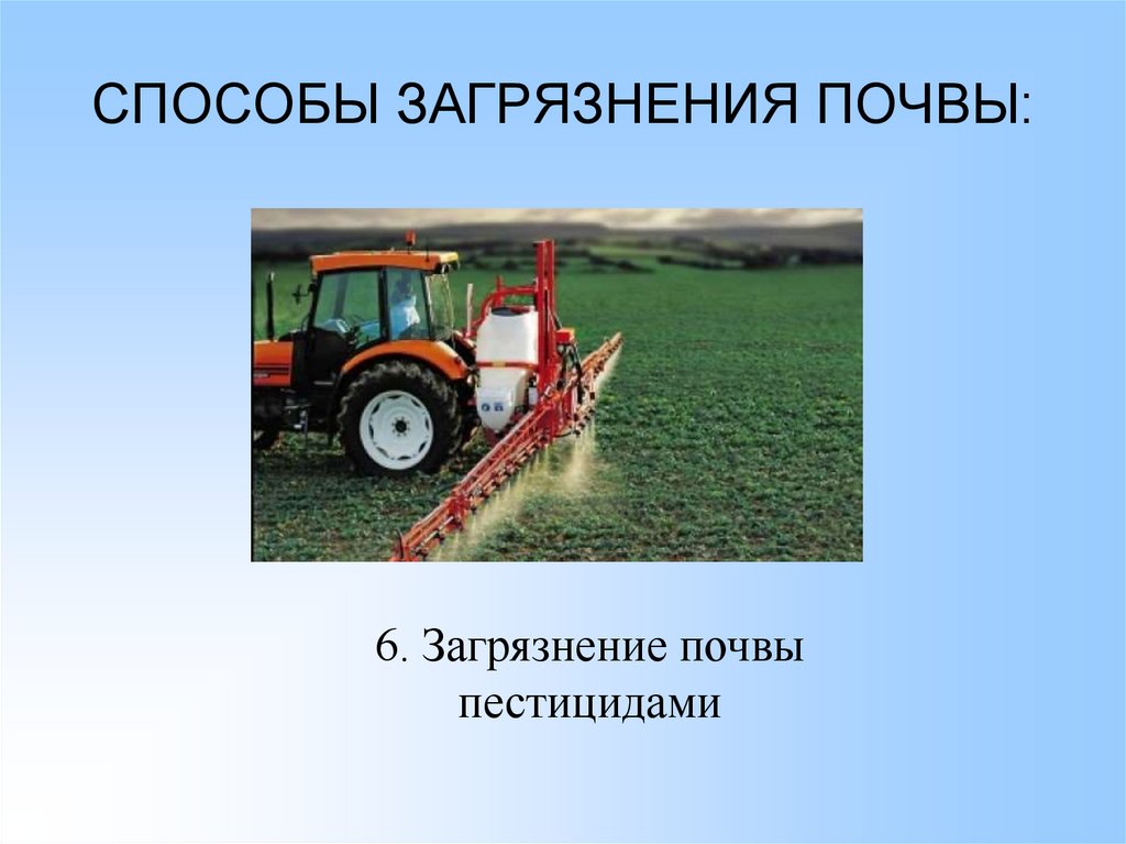СПОСОБЫ ЗАГРЯЗНЕНИЯ ПОЧВЫ:6. Загрязнение почвы
