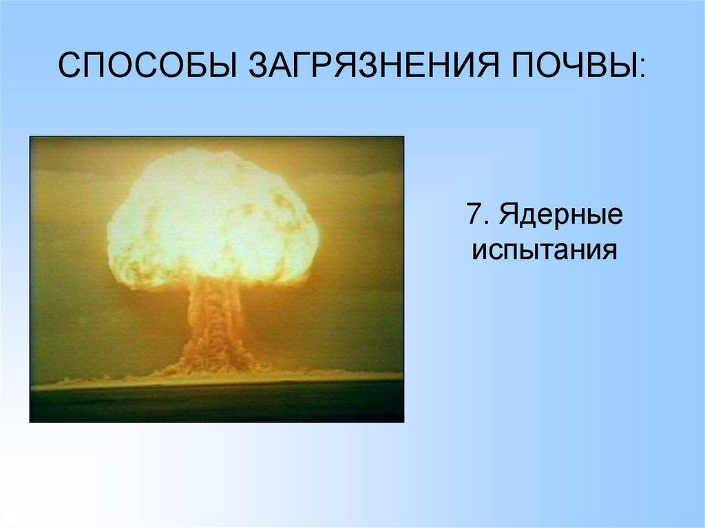 СПОСОБЫ ЗАГРЯЗНЕНИЯ ПОЧВЫ:7. Ядерные
