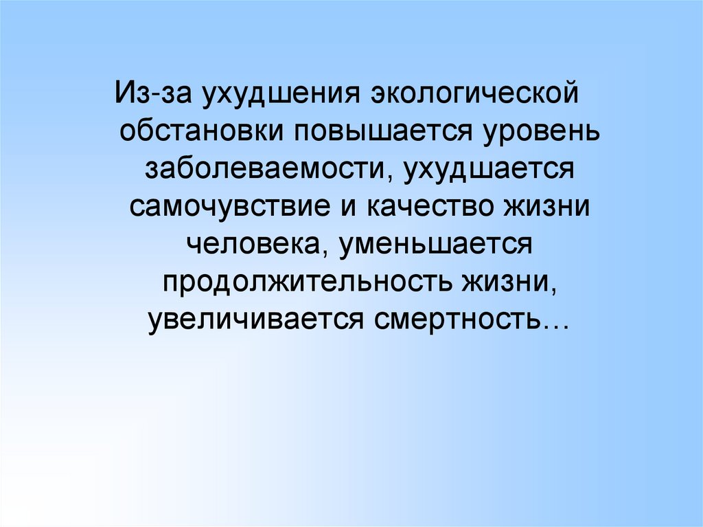 Из-за ухудшения экологическойобстановки повышается уровень