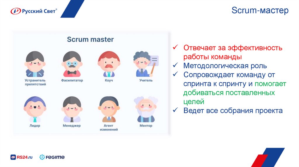 Scrum-мастерОтвечает за эффективность