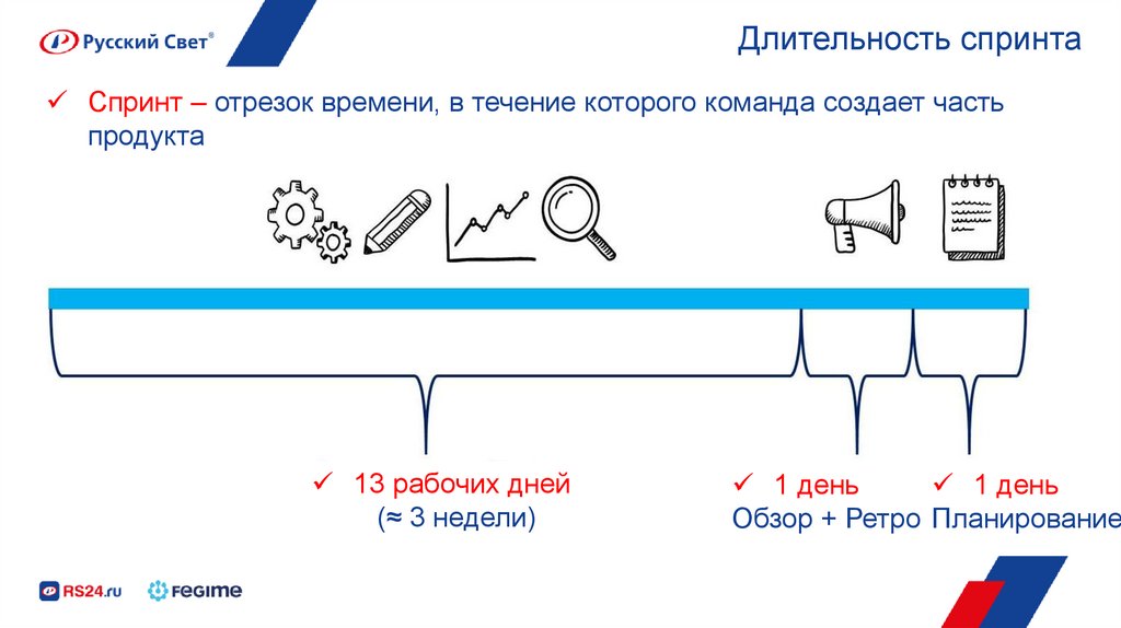 Длительность спринтаСпринт – отрезок времени, в течение которого команда создает часть