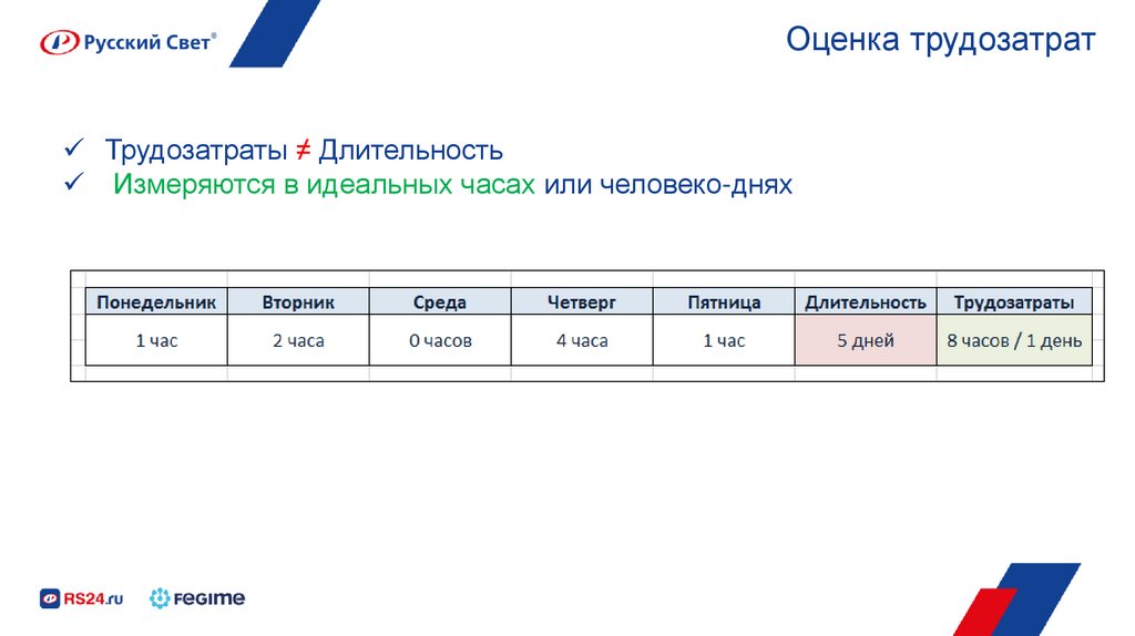 Оценка трудозатратТрудозатраты ≠ Длительность