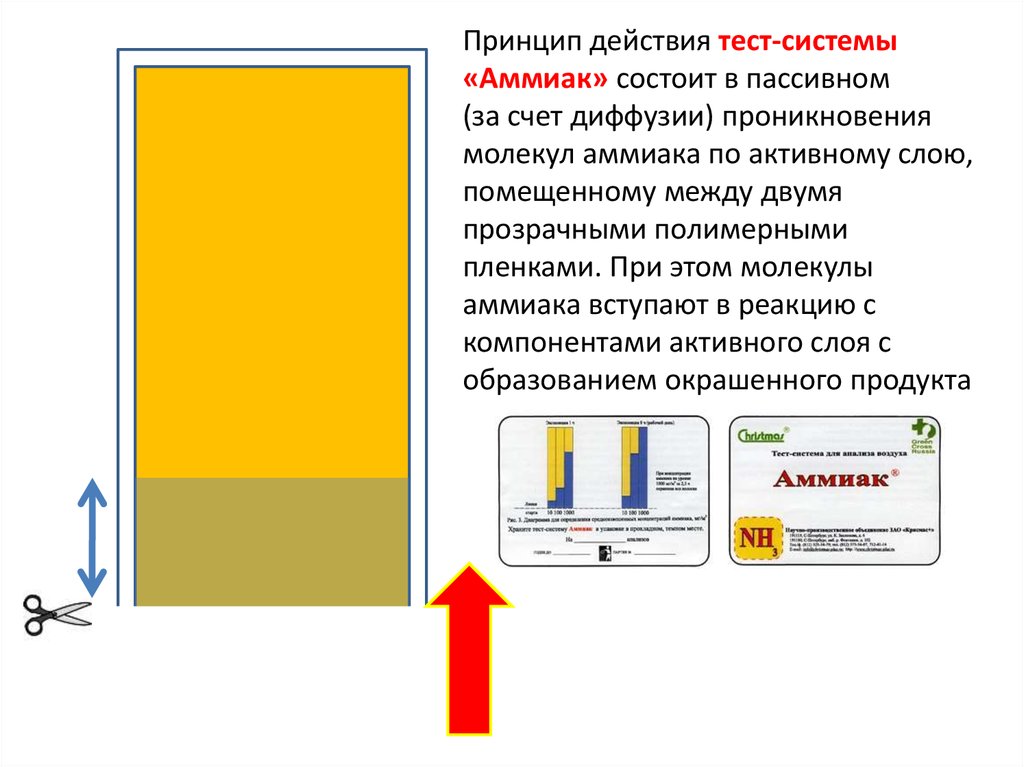 Принцип действия тест-системы«Аммиак» состоит в пассивном
