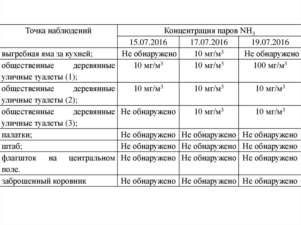 •определить возможные источники аммиака на территории лагеря «Тополек»;