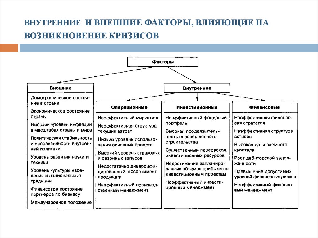 Внешние и внутренние факторы влияющие на возникновение кризисов