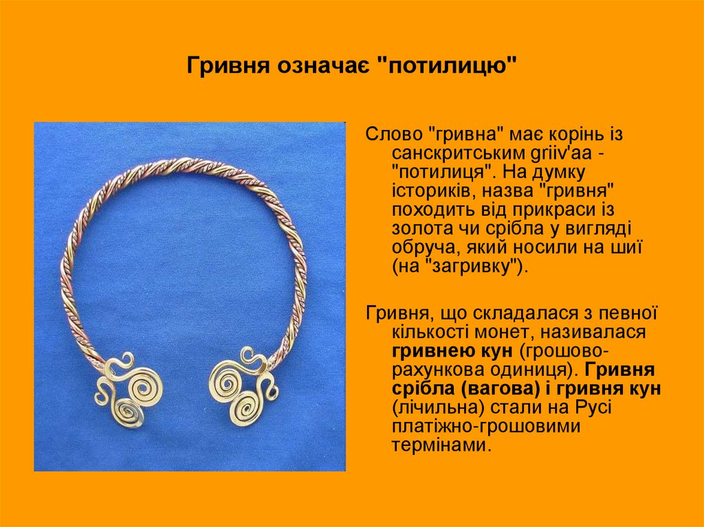 Гривня означає "потилицю"Слово "гривна" має корінь із