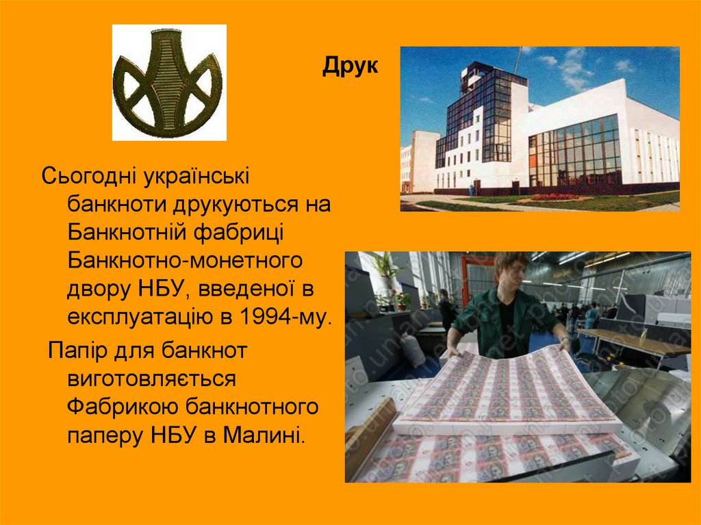 • Найголовніше – це водяні знаки-зображення, видимі прирозгляданні банкноти проти світла. По-перше, це багатотоновий