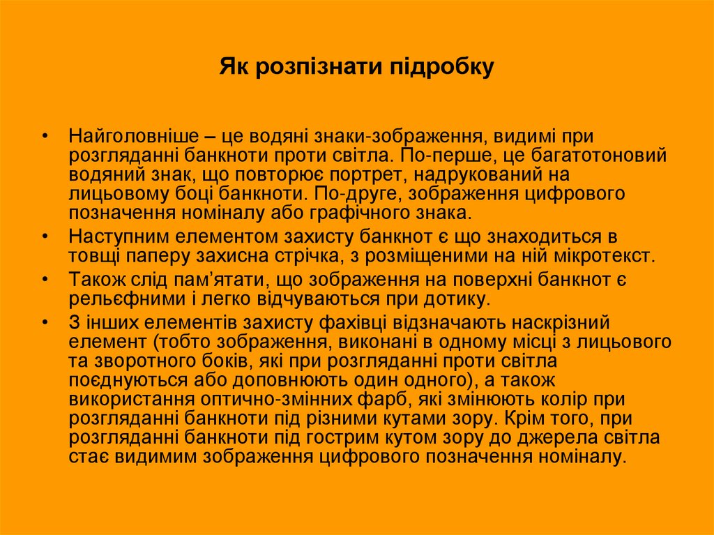 • Також слід пам’ятати, що зображення на поверхні банкнот є