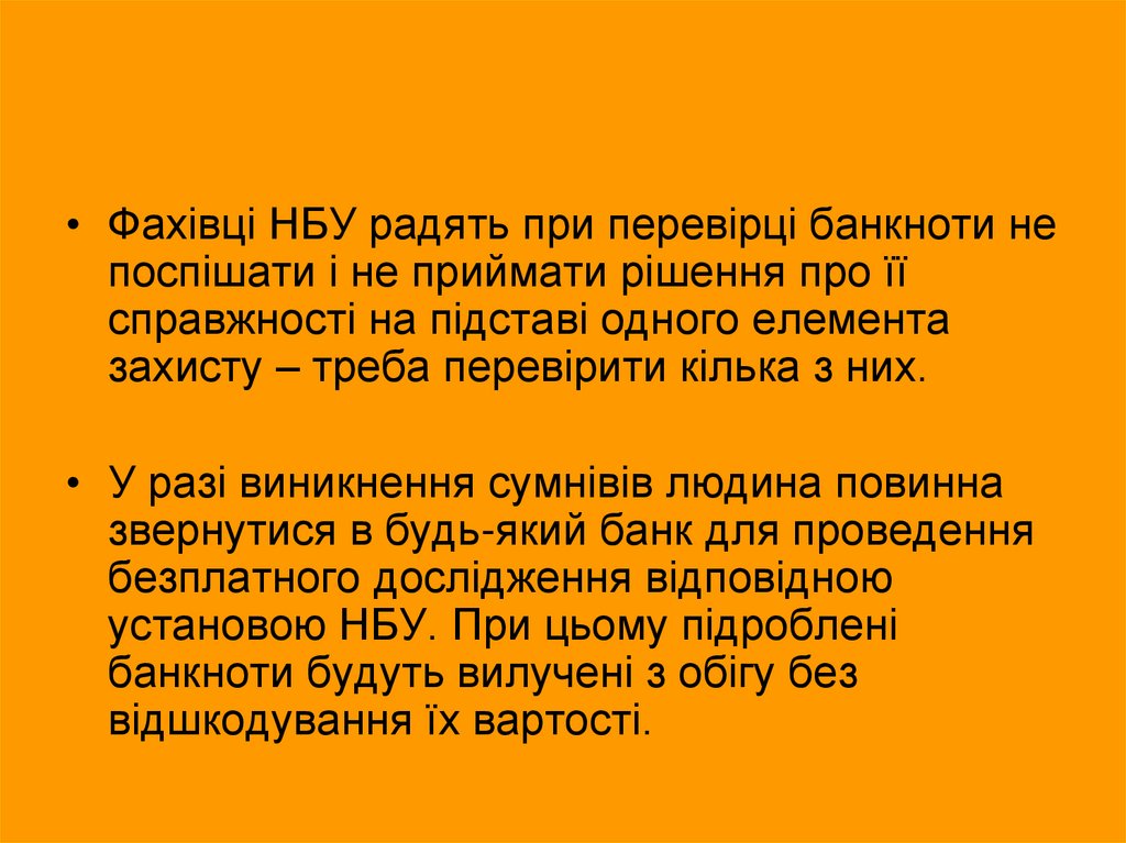 • Фахівці НБУ радять при перевірці банкноти непоспішати і не приймати рішення про її
