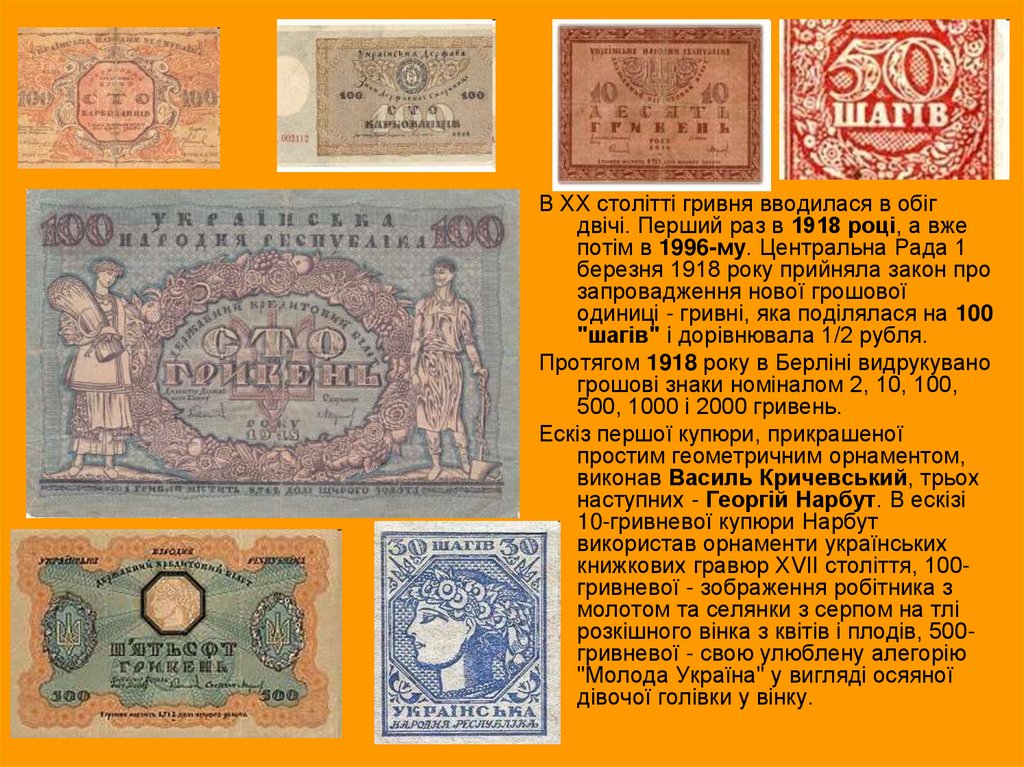 В XX столітті гривня вводилася в обігдвічі. Перший раз в 1918 році, а вже