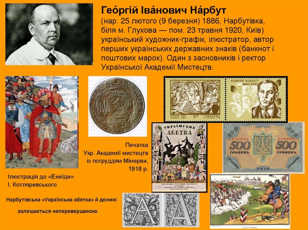 5. Гео́ргій Іва́нович На́рбут (нар. 25 лютого (9 березня) 1886, Нарбутівка, біля м. Глухова — пом. 23 травня 1920, Київ)
