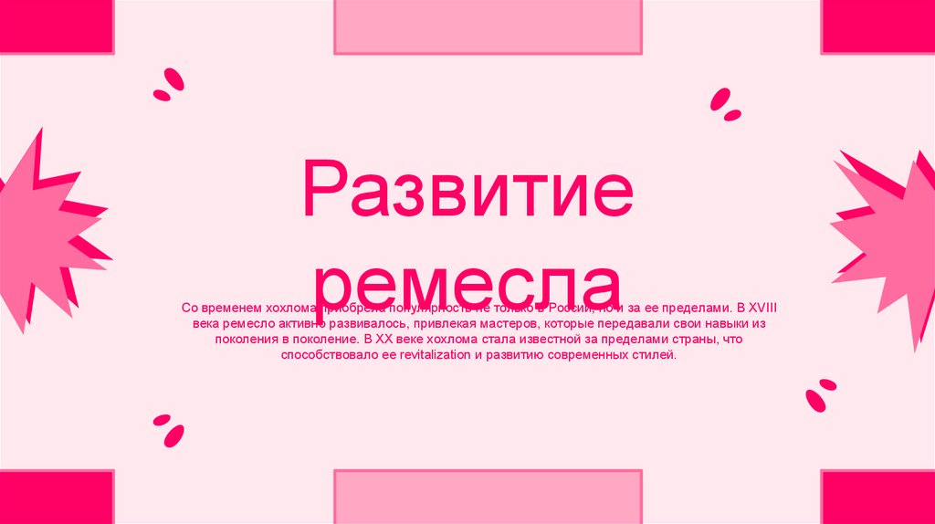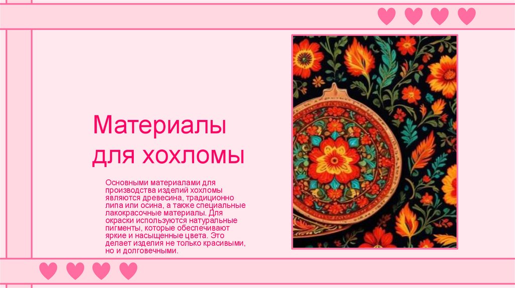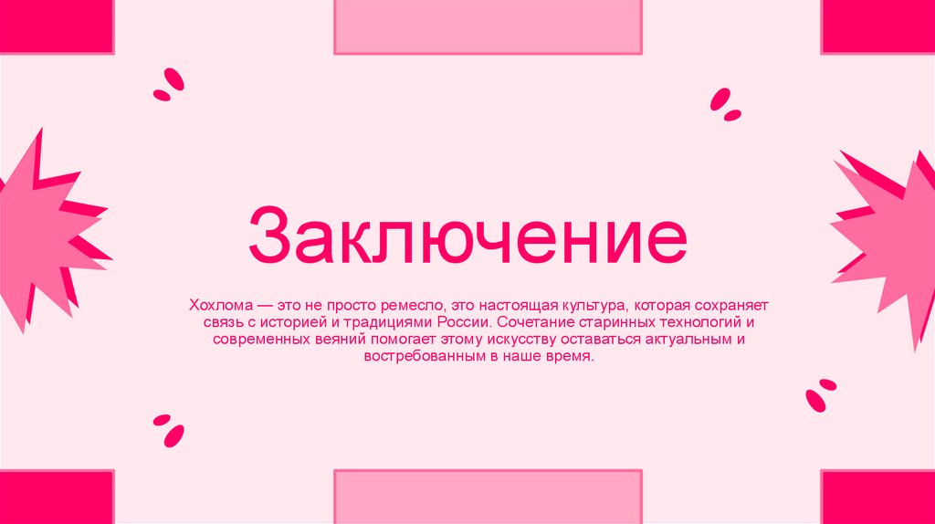 ЗаключениеХохлома — это не просто ремесло, это настоящая культура, которая сохраняет