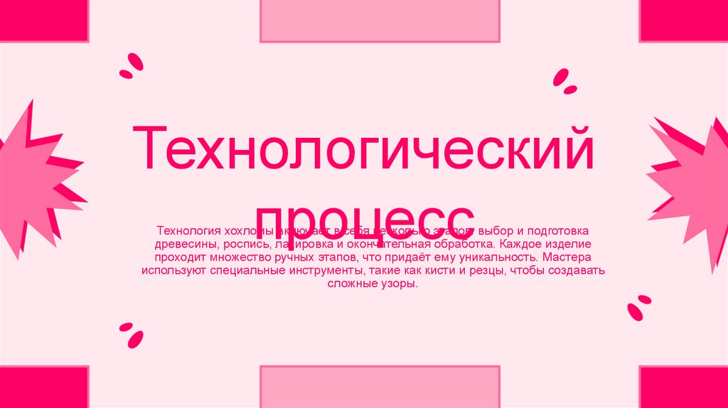Технология хохломы включает в себя несколько этапов: выбор и подготовка