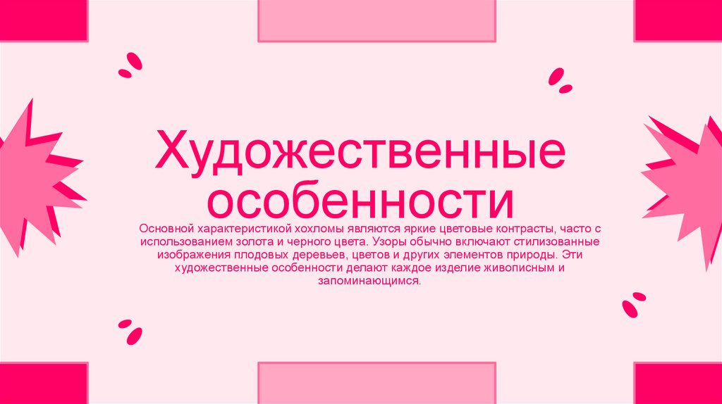 Основной характеристикой хохломы являются яркие цветовые контрасты, часто с