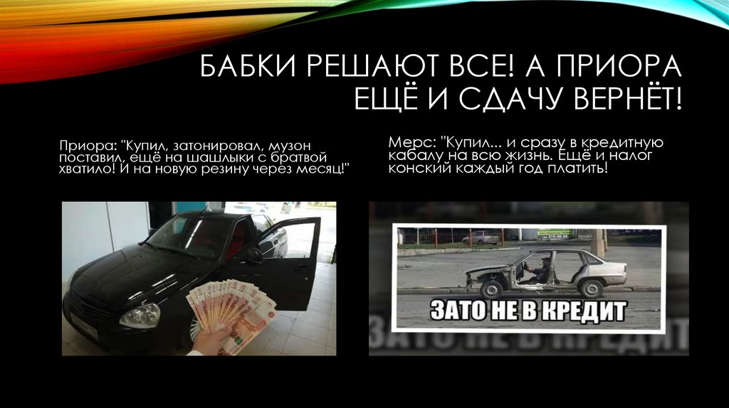 БАБКИ РЕШАЮТ ВСЕ! А ПРИОРАЕЩЁ И СДАЧУ ВЕРНЁТ!