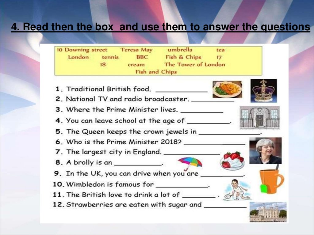 5.England, Scotland, Wales and Northern Ireland are the four parts of the UK.
