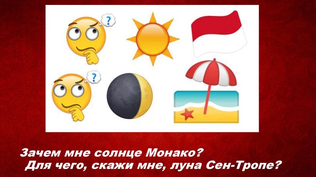 Зачем мне солнце Монако?Для чего, скажи мне, луна Сен-Тропе?