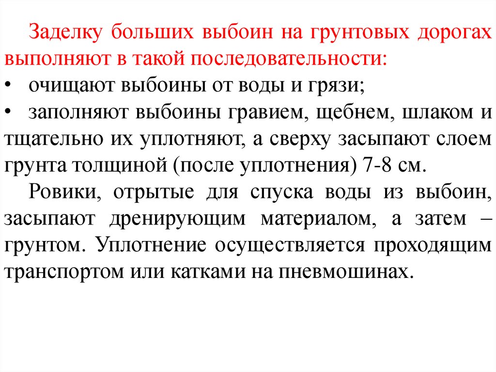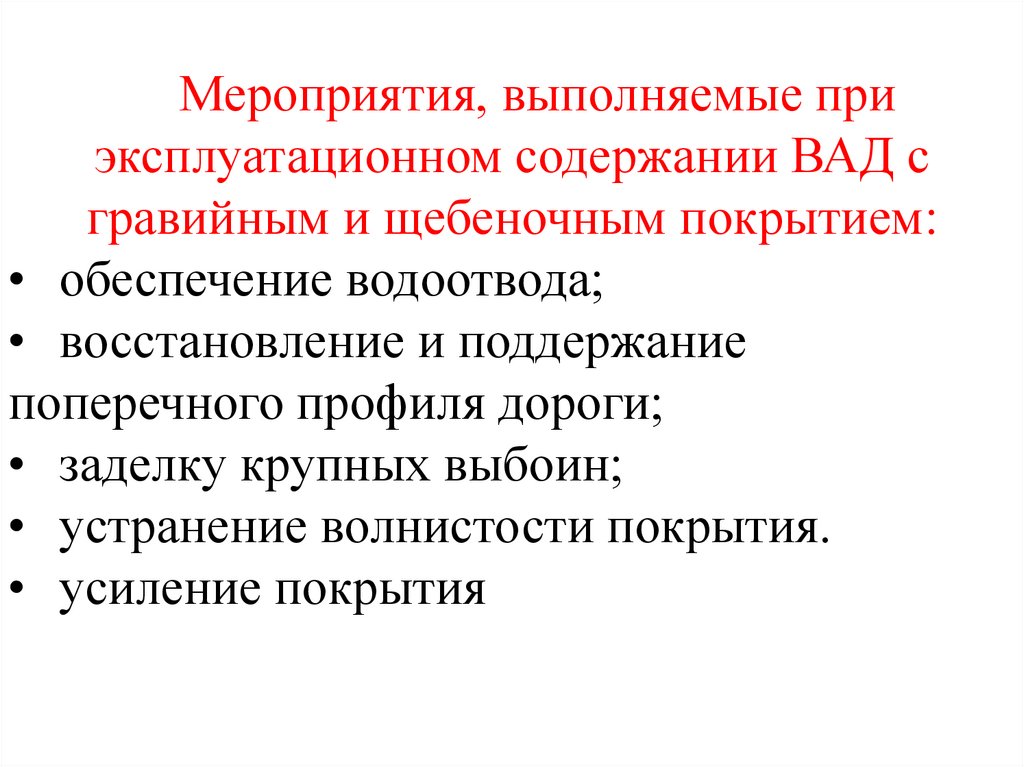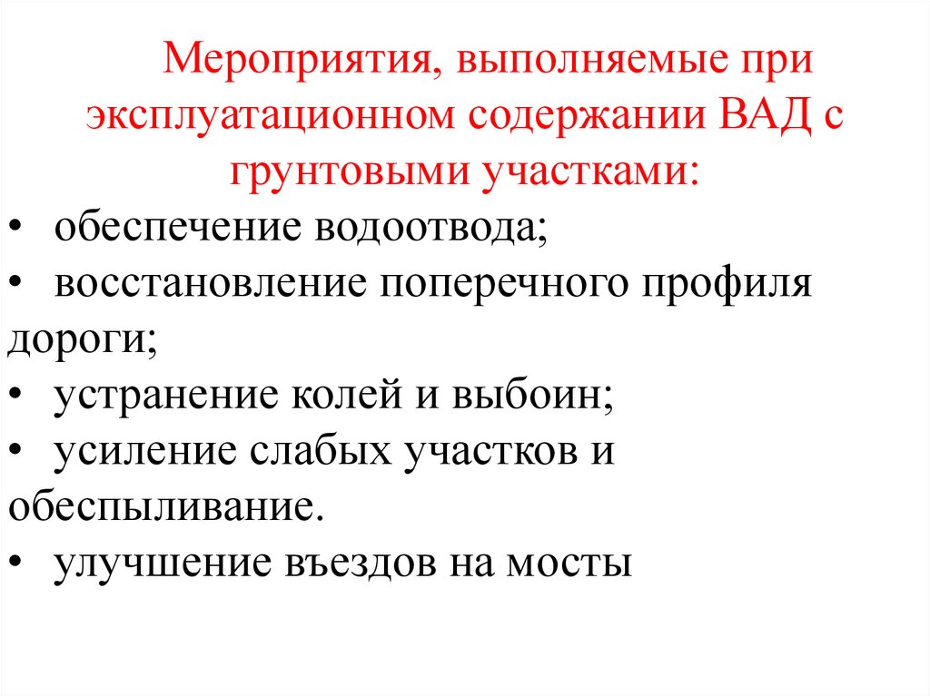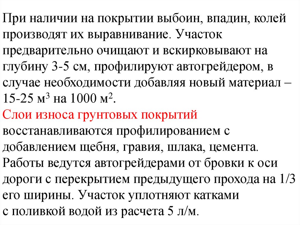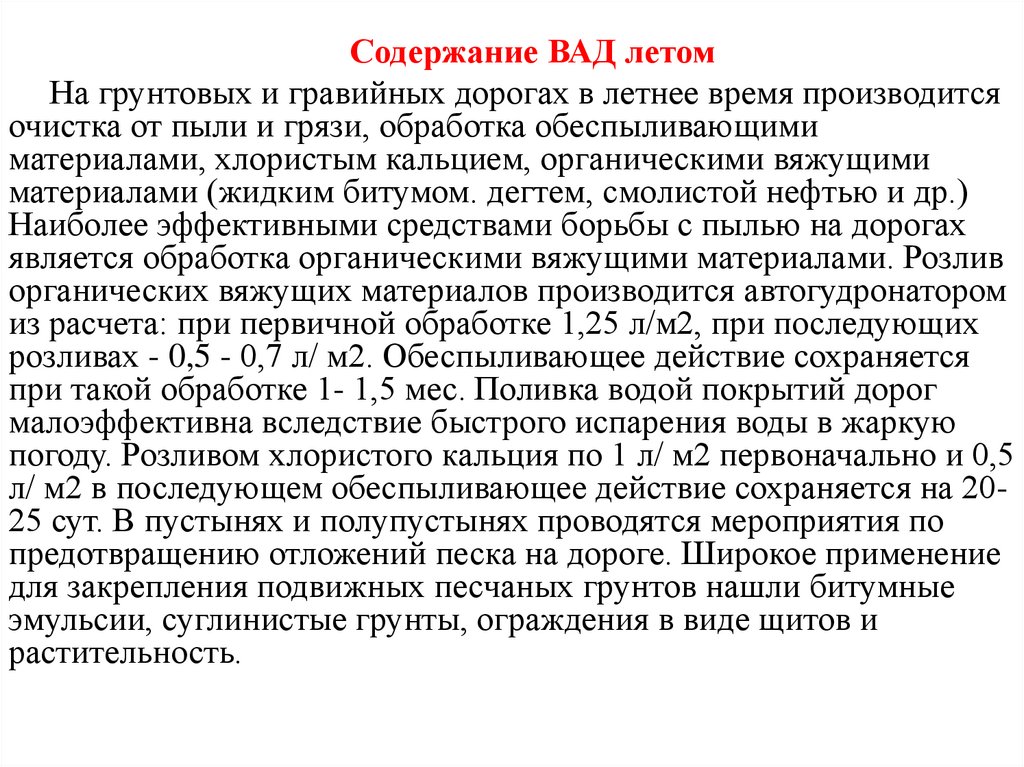 Содержание ВАД летомНа грунтовых и гравийных дорогах в летнее время производится