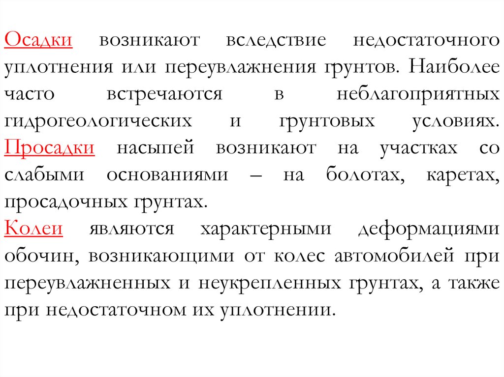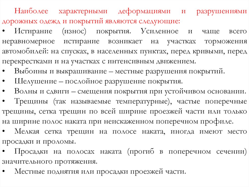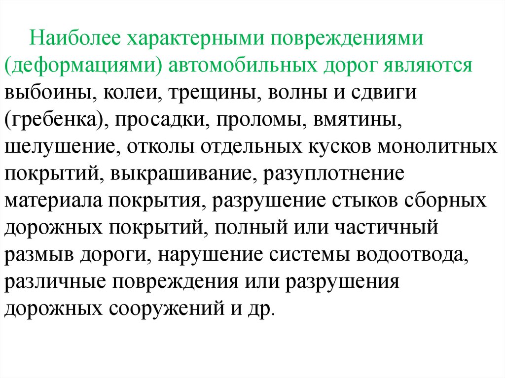 Наиболее характерными повреждениями(деформациями) автомобильных дорог являются