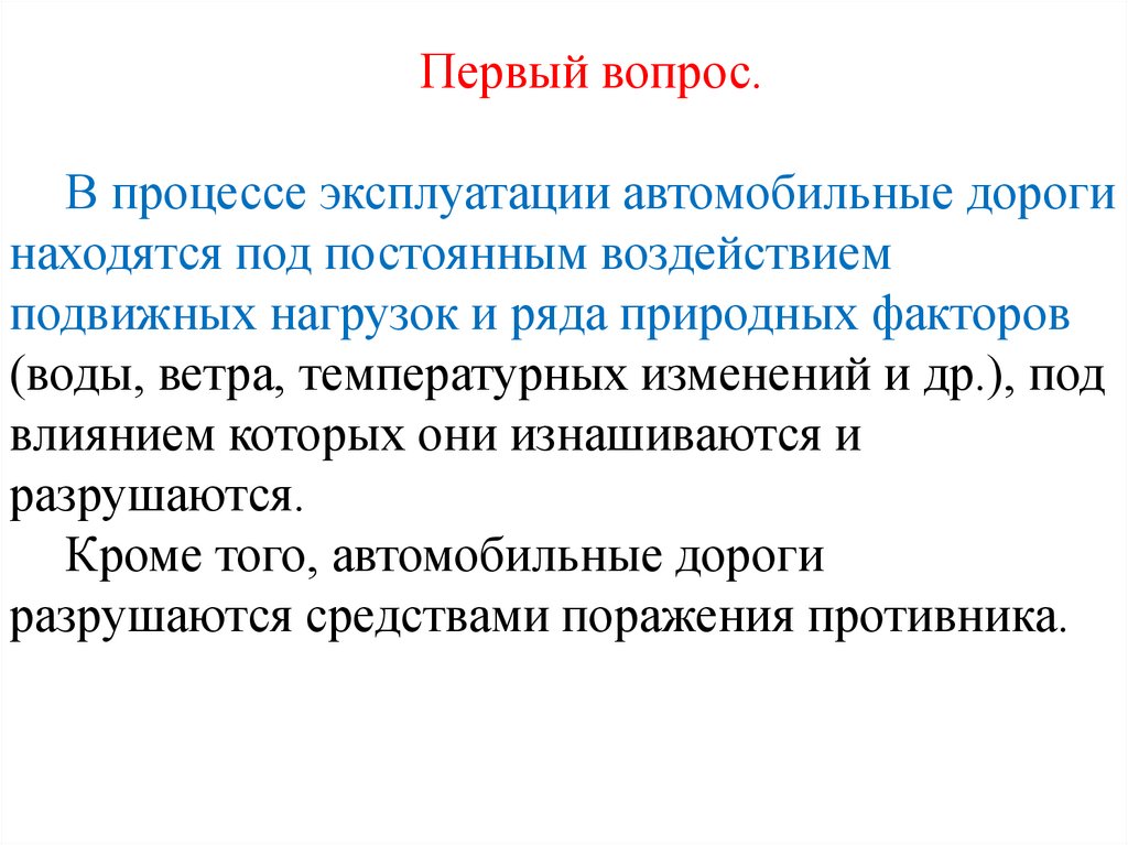 Первый вопрос.В процессе эксплуатации автомобильные дороги
