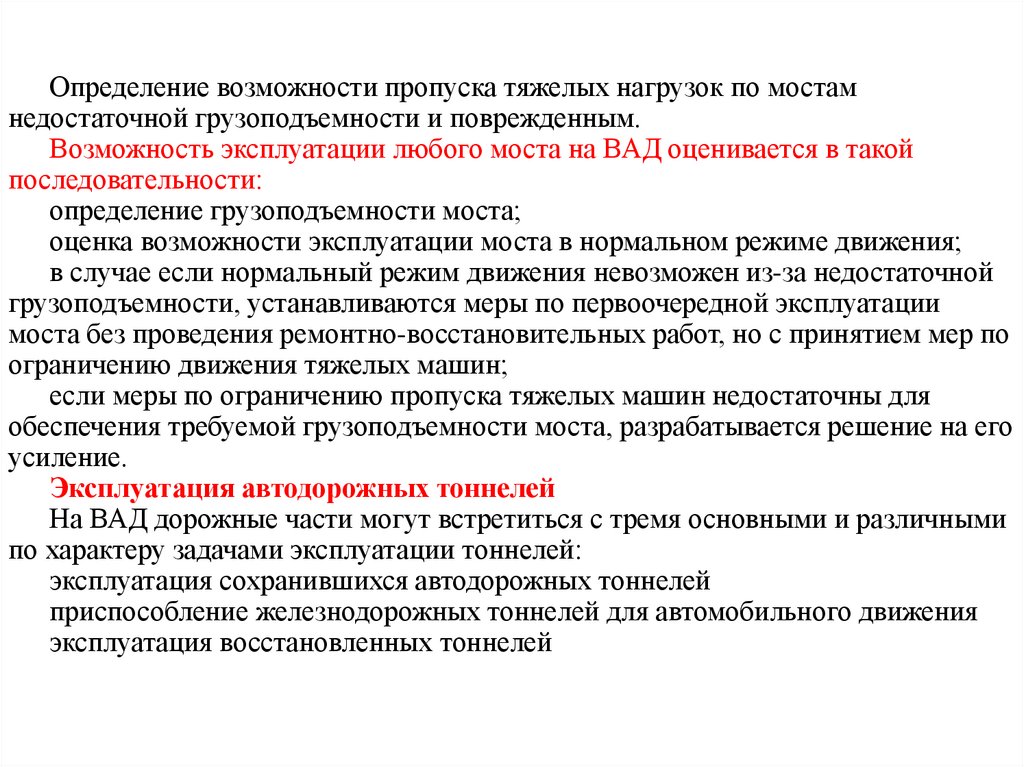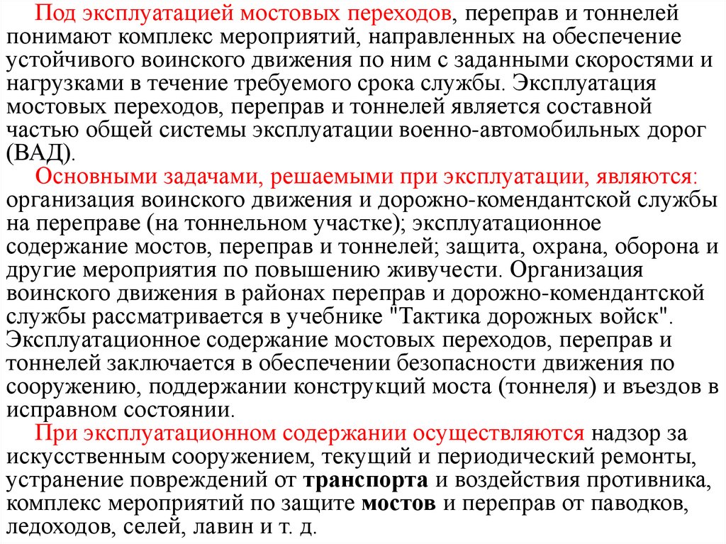 Под эксплуатацией мостовых переходов, переправ и тоннелейпонимают комплекс мероприятий, направленных на обеспечение