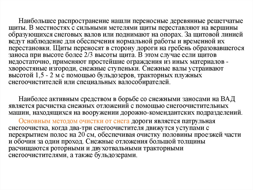 Наиболее активным средством в борьбе со снежными заносами на ВАД