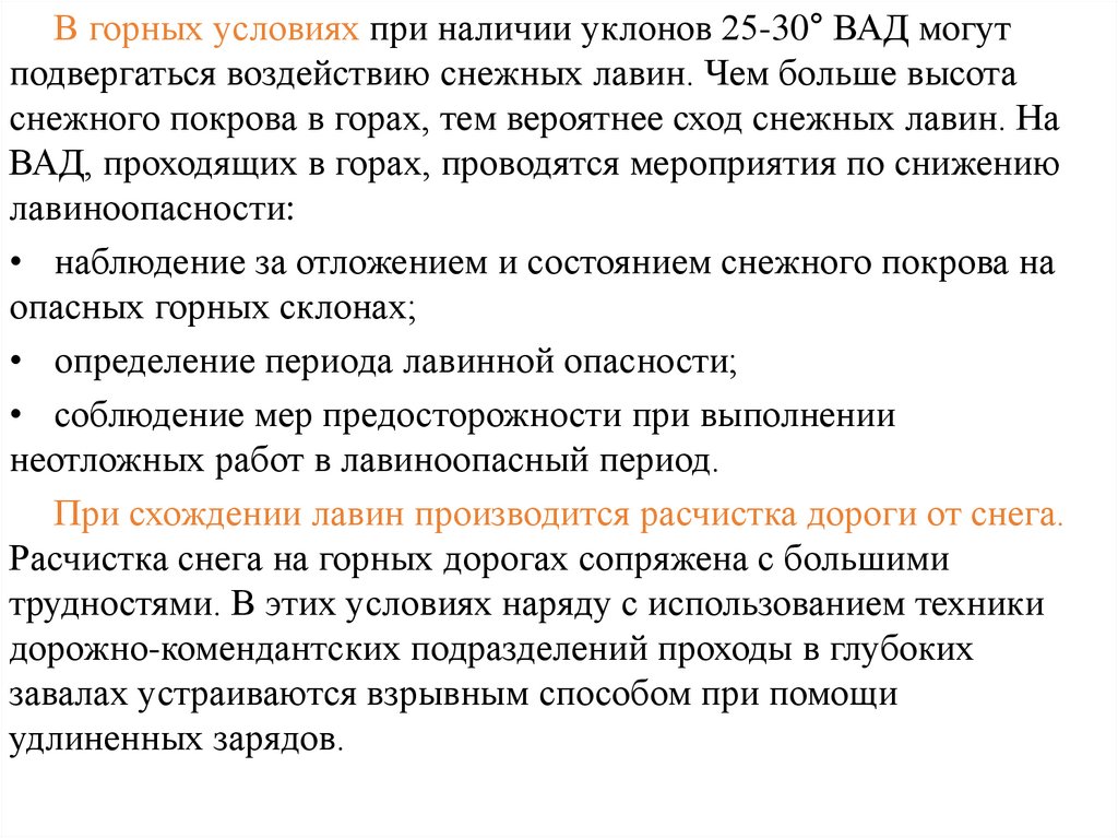 ВАД, проходящих в горах, проводятся мероприятия по снижению
