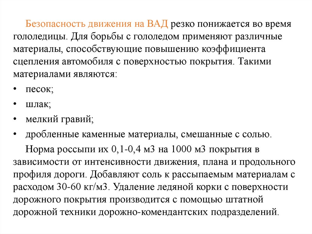 Безопасность движения на ВАД резко понижается во времягололедицы. Для борьбы с гололедом применяют различные