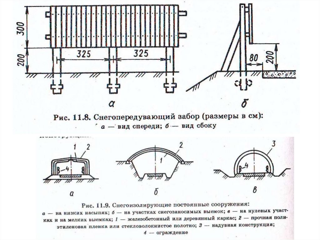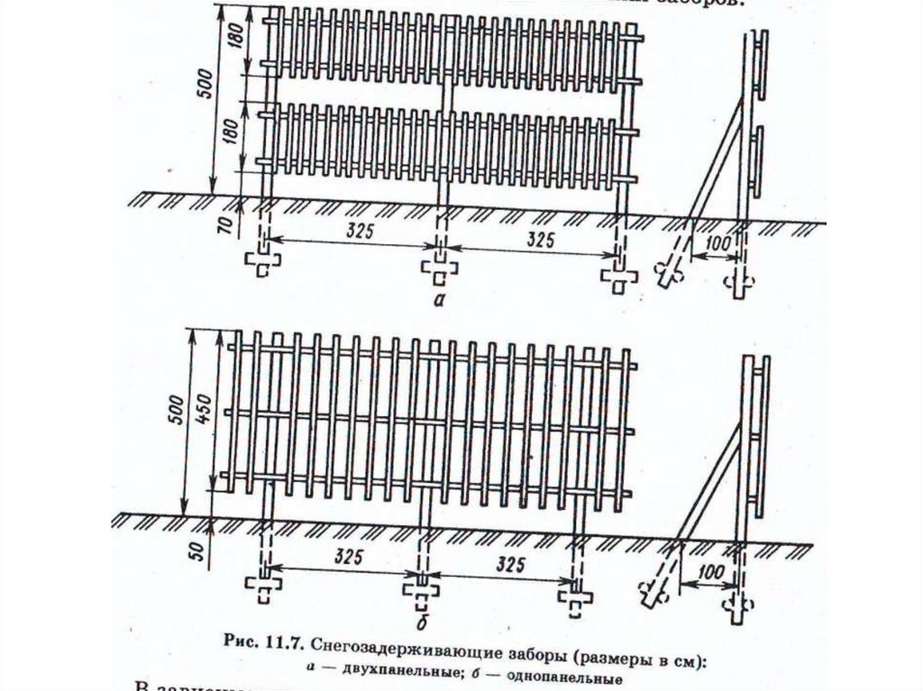 недостаточно, применяют простейшие ограждения из иных материалов хворостяные изгороди, снежные ступеньки. Снежные валы устраивают