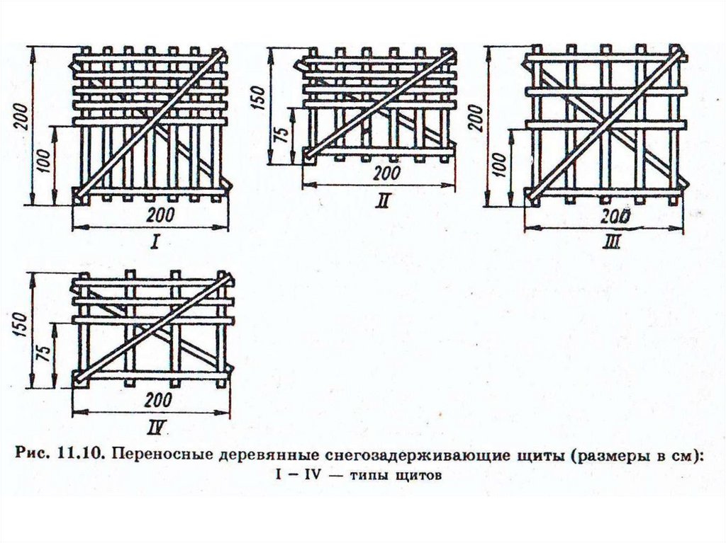 Наибольшее распространение нашли переносные деревянные решетчатыещиты. В местностях с сильными метелями щиты переставляют на вершины