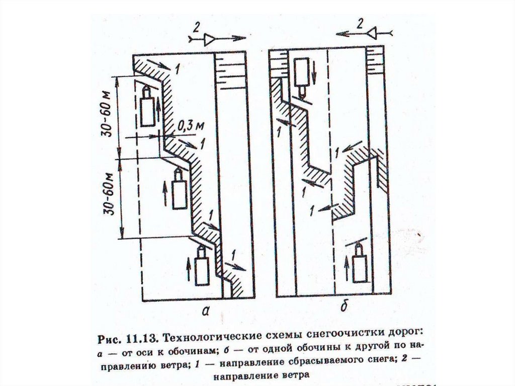 снегоочистка, когда два-три снегоочистителя движутся уступами с