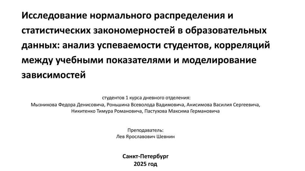 Исследование нормального распределения истатистических закономерностей в образовательных