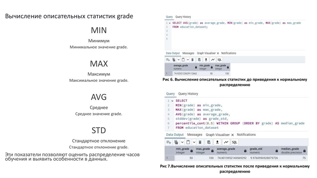 Рис 6. Вычисление описательных статистик до приведения к нормальному