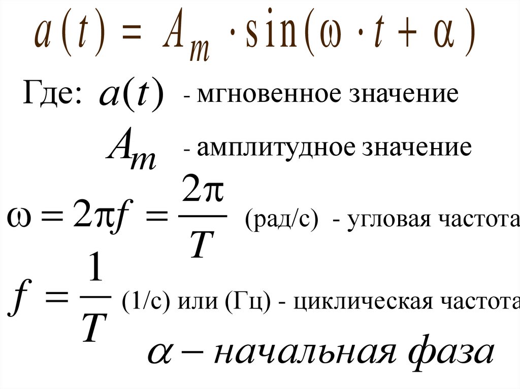 а ( t ) А m s in ( t )Где: а (t ) - мгновенное значение