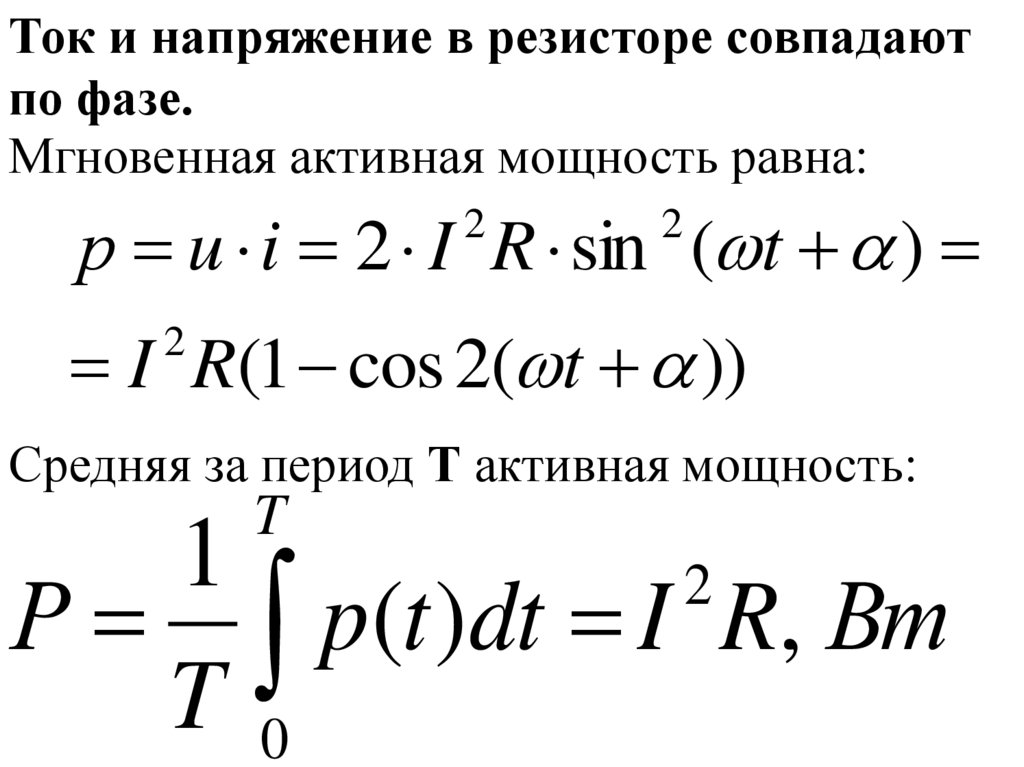при токе i 2 I sin( t )u R 2 U R sin( t )